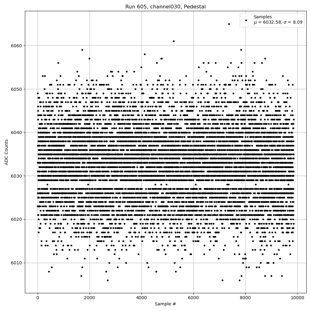 Run605 (HI Gain): Pedestal Per-Channel Plots
