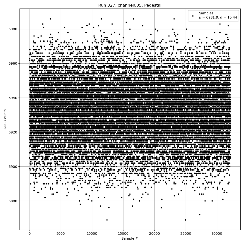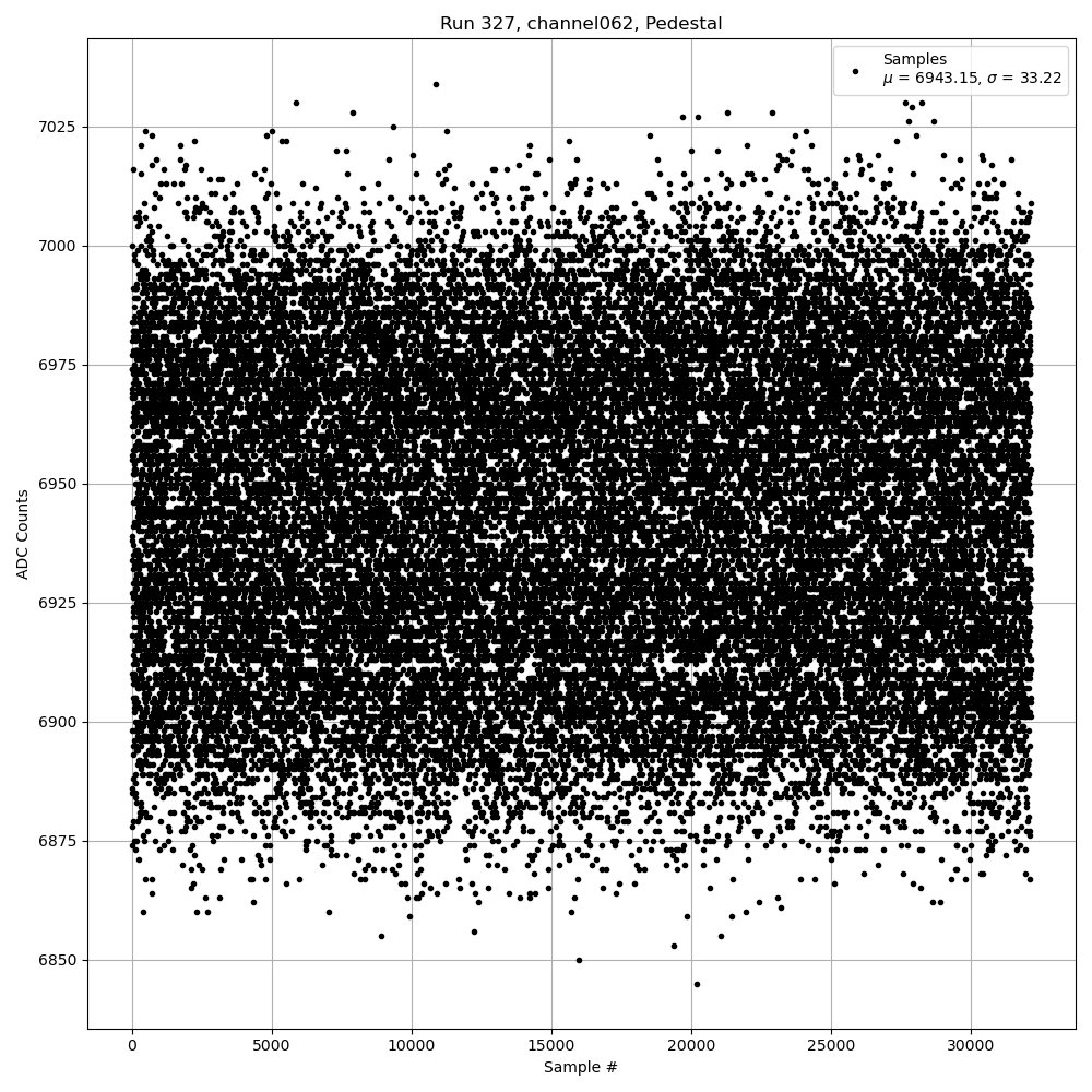 Run327 (HI Gain): Pedestal Per-Channel Plots