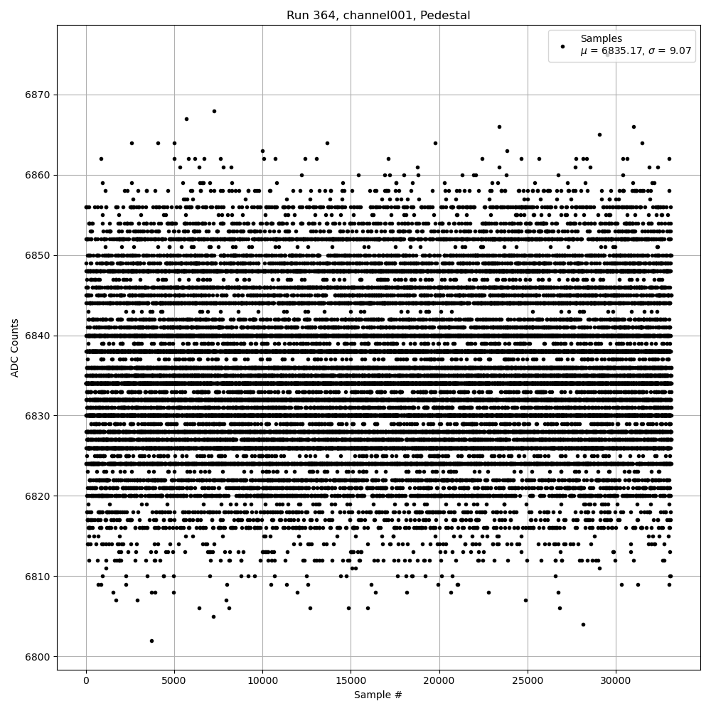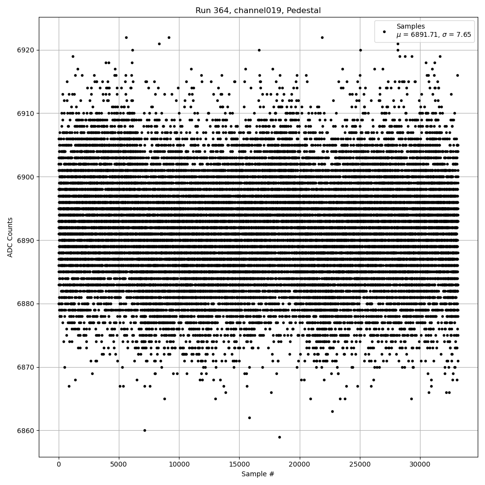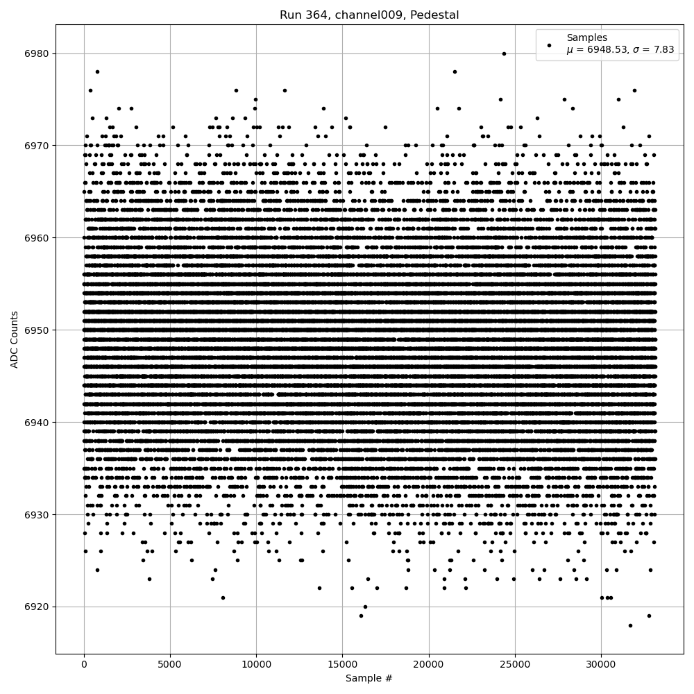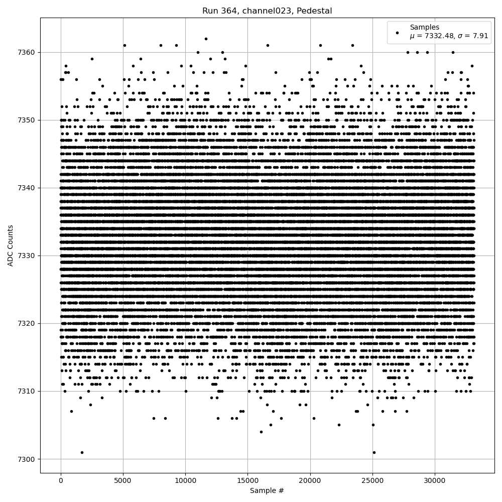 Run364 (HI Gain): Pedestal Per-Channel Plots
