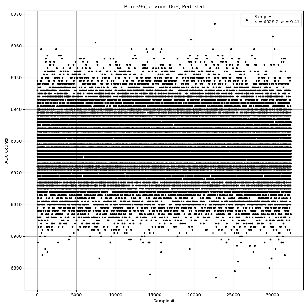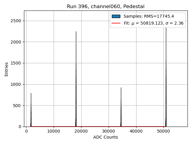 Run396 (HI Gain): Pedestal Per-Channel Plots