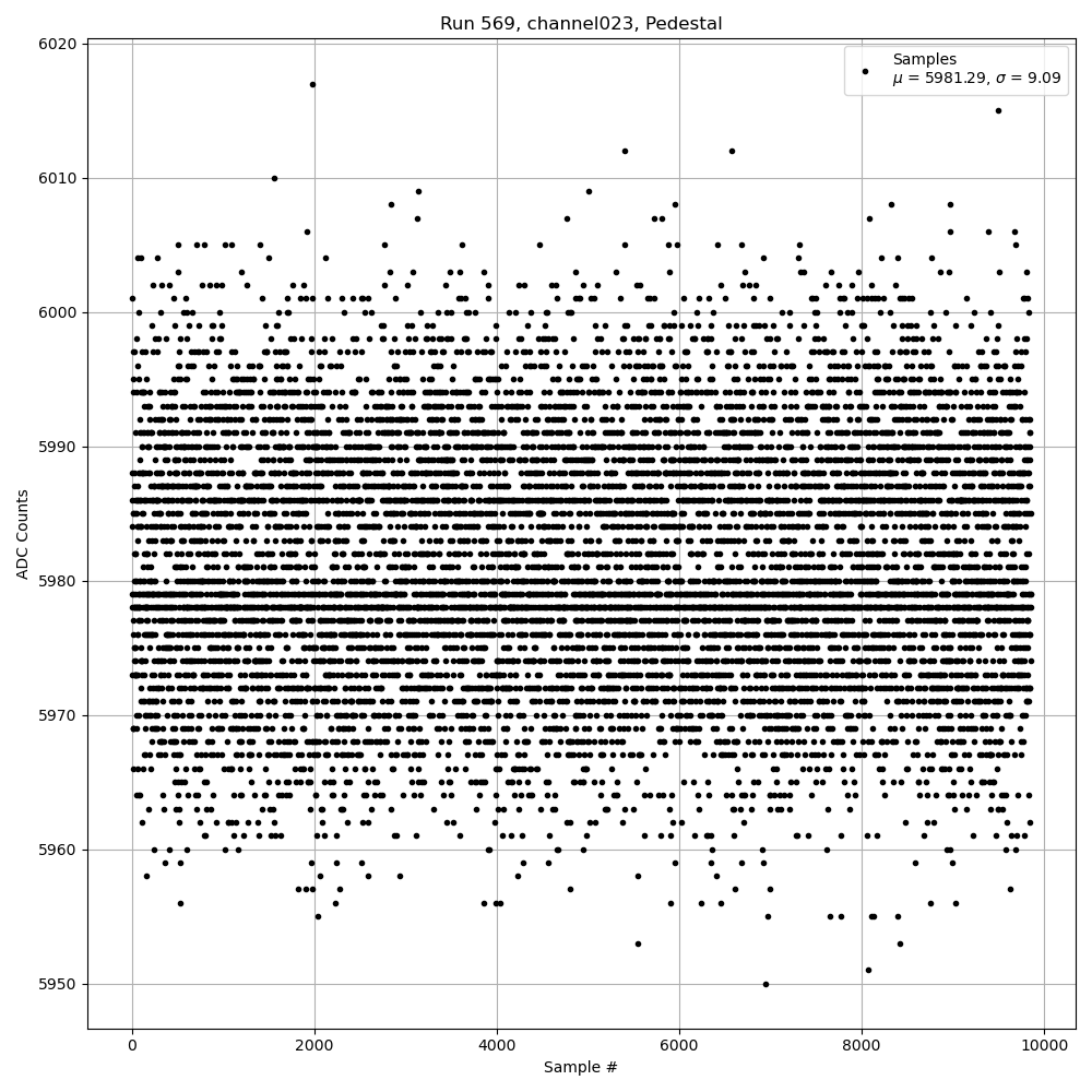 Run569 (HI Gain): Pedestal Per-Channel Plots