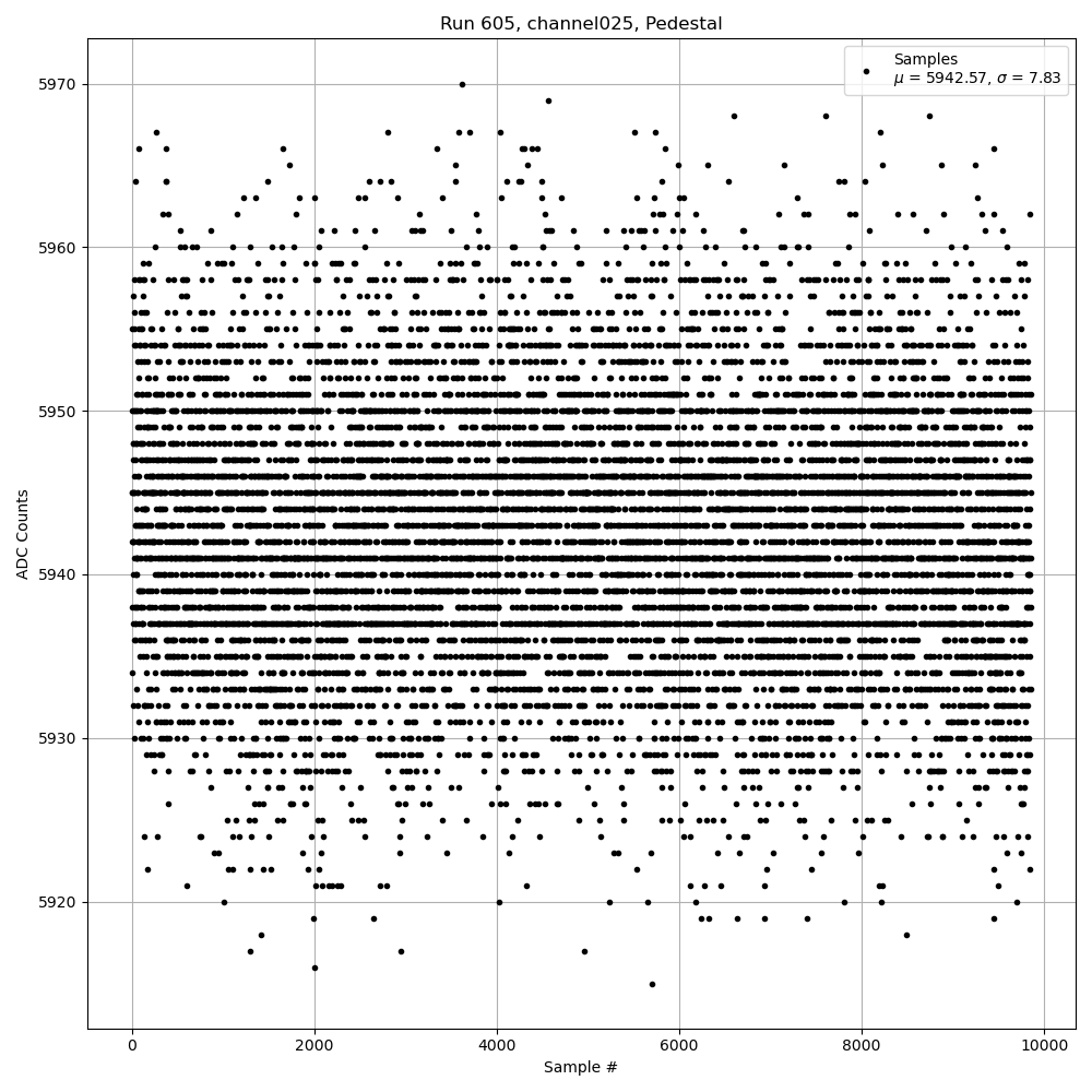 Run605 (HI Gain): Pedestal Per-Channel Plots
