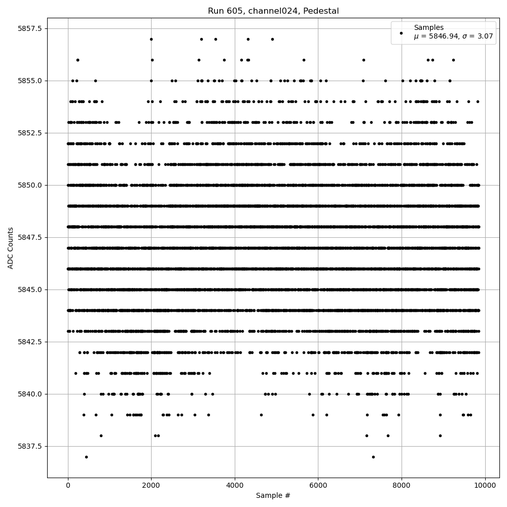 Run605 (LO Gain): Pedestal Per-Channel Plots