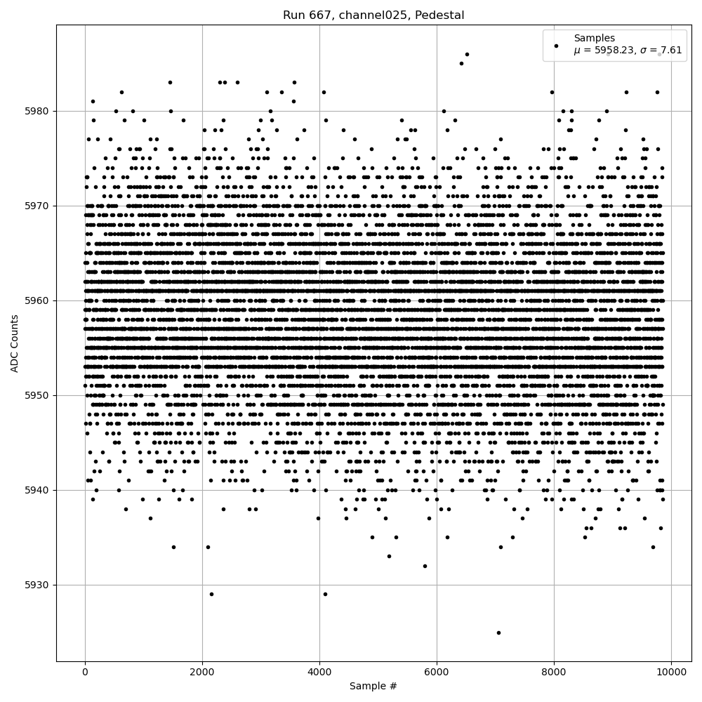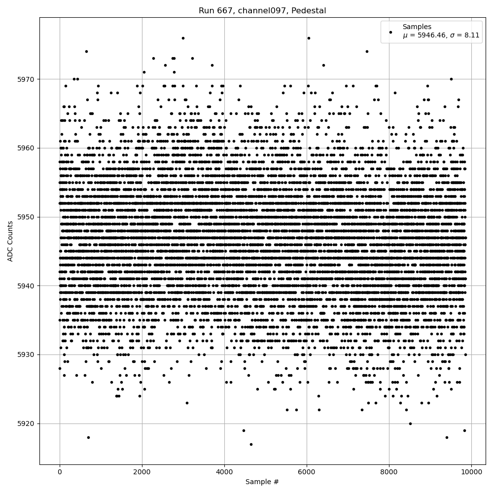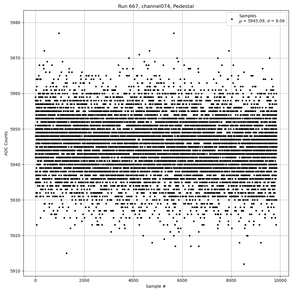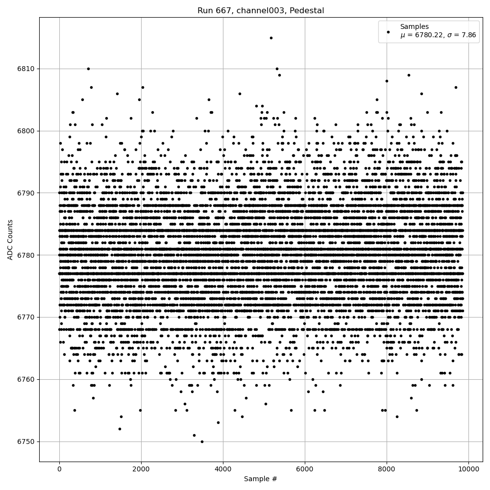 Run667 (HI Gain): Pedestal Per-Channel Plots