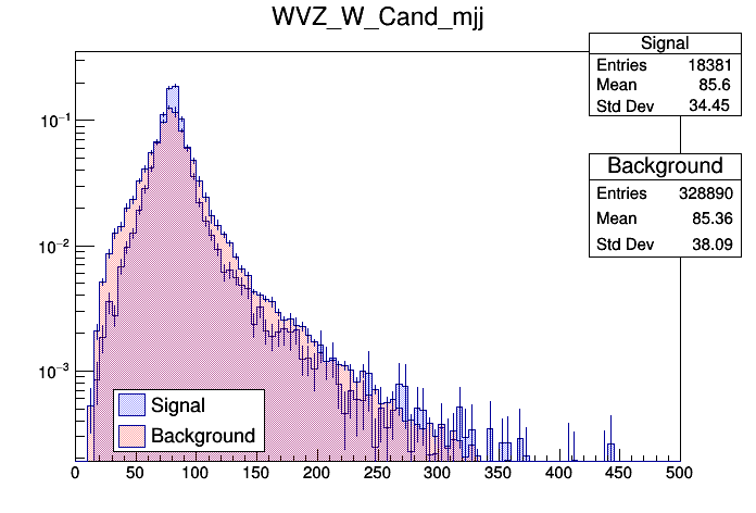 mJJ of Best W Candidate (nJets >= 3 only) |
