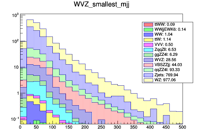 Smallest mJJ (nJets >= 3 only) |