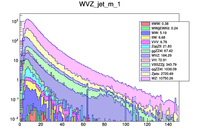 | mZJ1 (nJets = 1 only) | mJ1J2 (nJets = 2 only) | mJJ of Best W Candidate (nJets >= 3 only) | Smallest mJJ (nJets >= 3 only) |