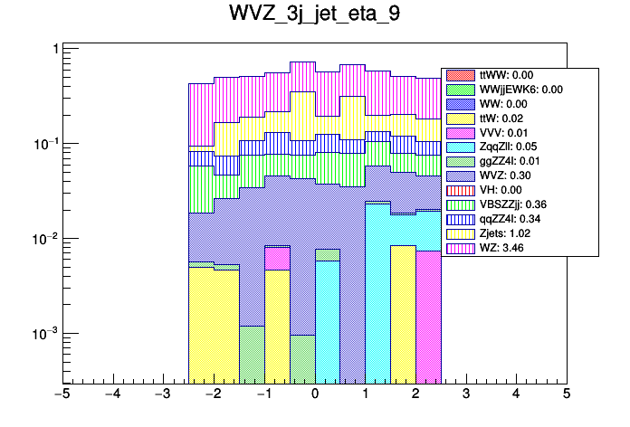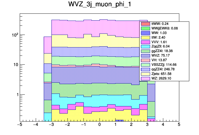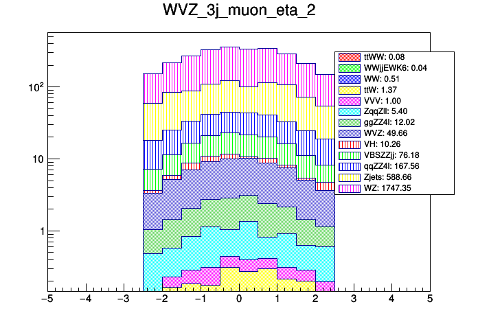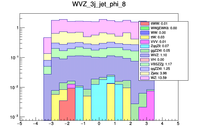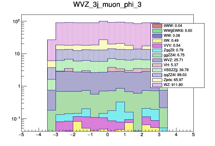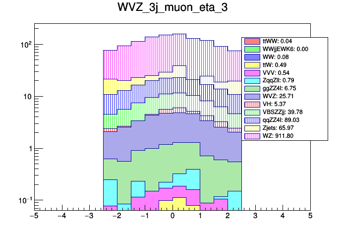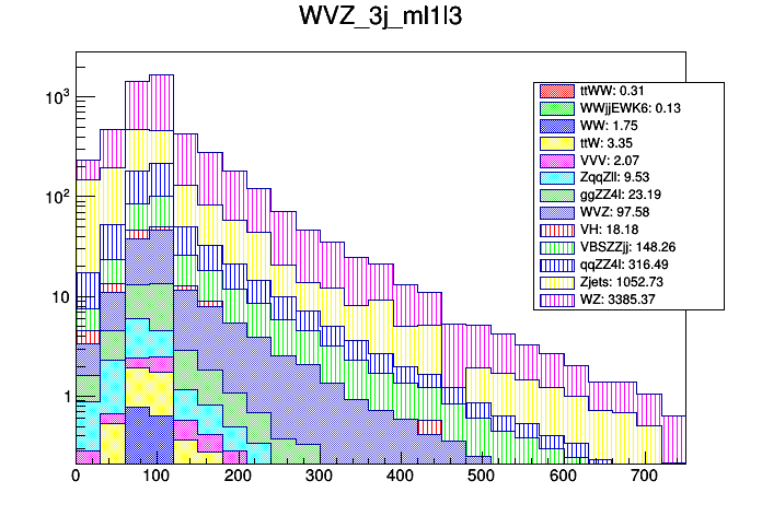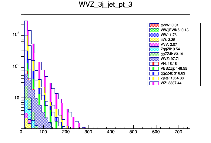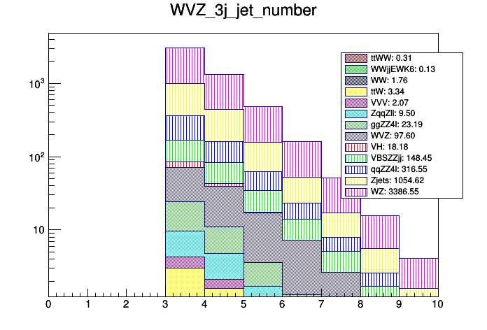 Comparison of different processes with cuts