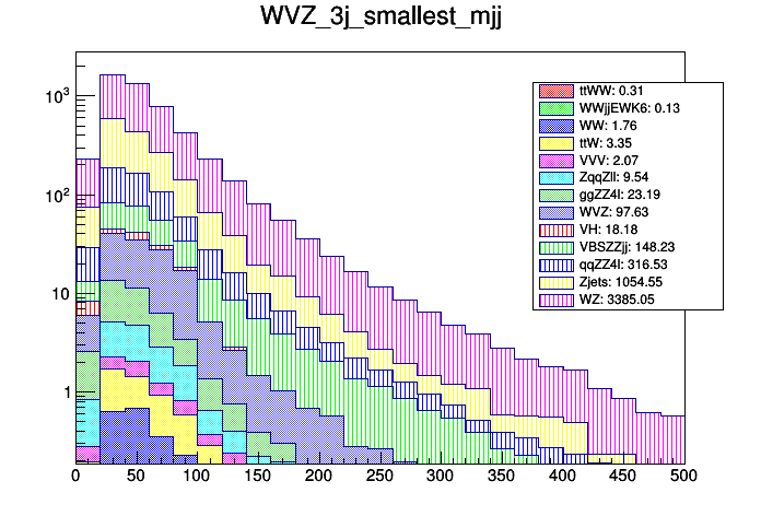 mJJ of Best W Candidate (nJets >= 3 only) Smallest mJJ (nJets >= 3 only)