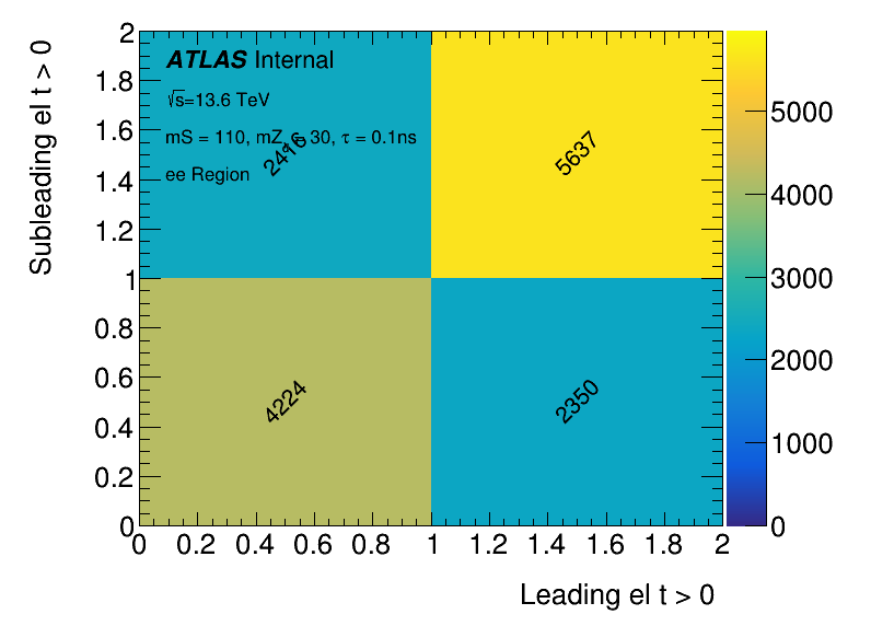 Cuts: Pass EM Trigger OR + one trigger matched + ee Region (>= 2 el) + lead el pT > 30 && maxEcell E > 5 GeV