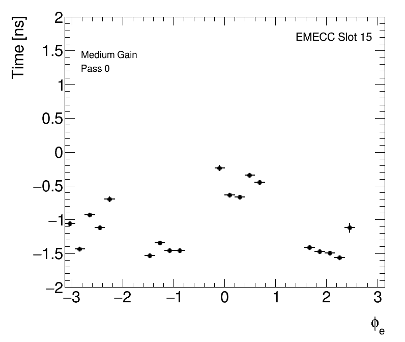 Average Cell Time vs Angular Position Medium Gain EMECC Slot 15 |