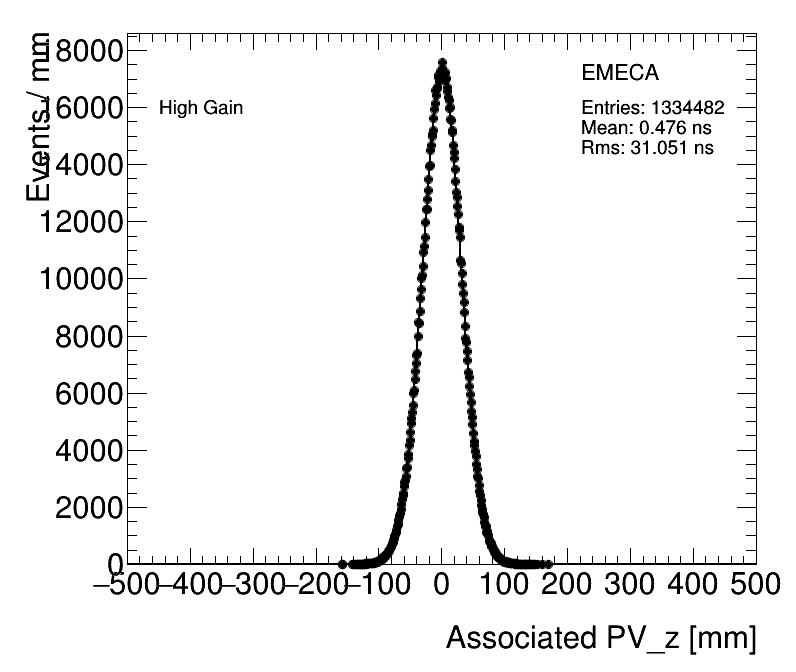 Average z position of PV High Gain EMECA