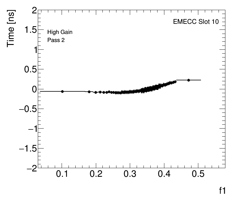 Average Cell Time vs Fractional Energy Deposit High Gain EMECC Slot 10 |