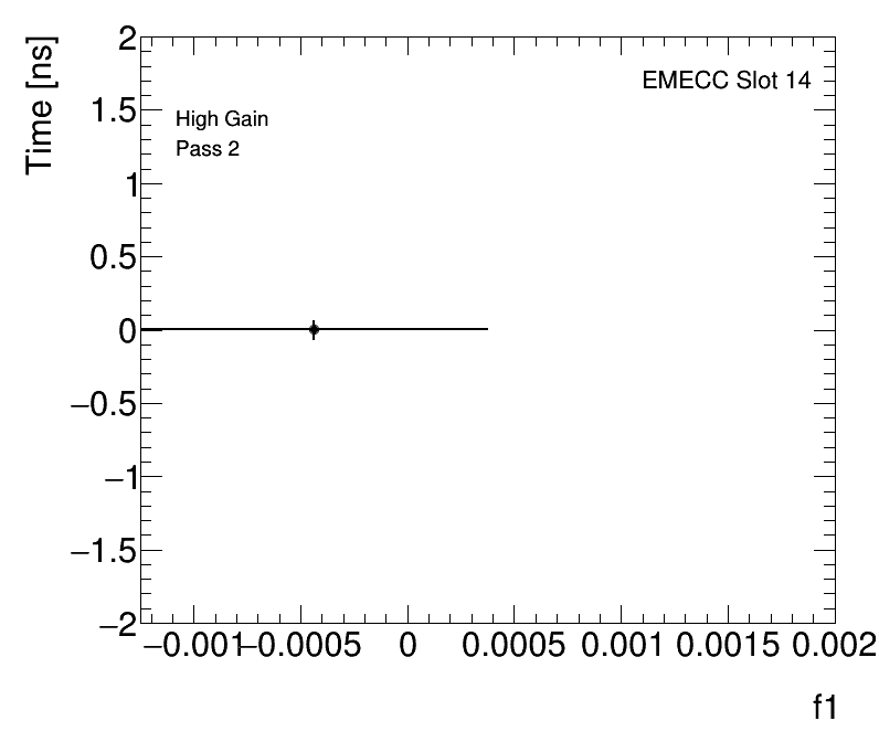 Average Cell Time vs Fractional Energy Deposit High Gain EMECC Slot 14 |
