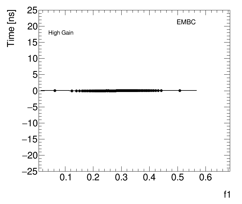 | Average Cell Time vs Fractional Energy Deposit High Gain EMBC |