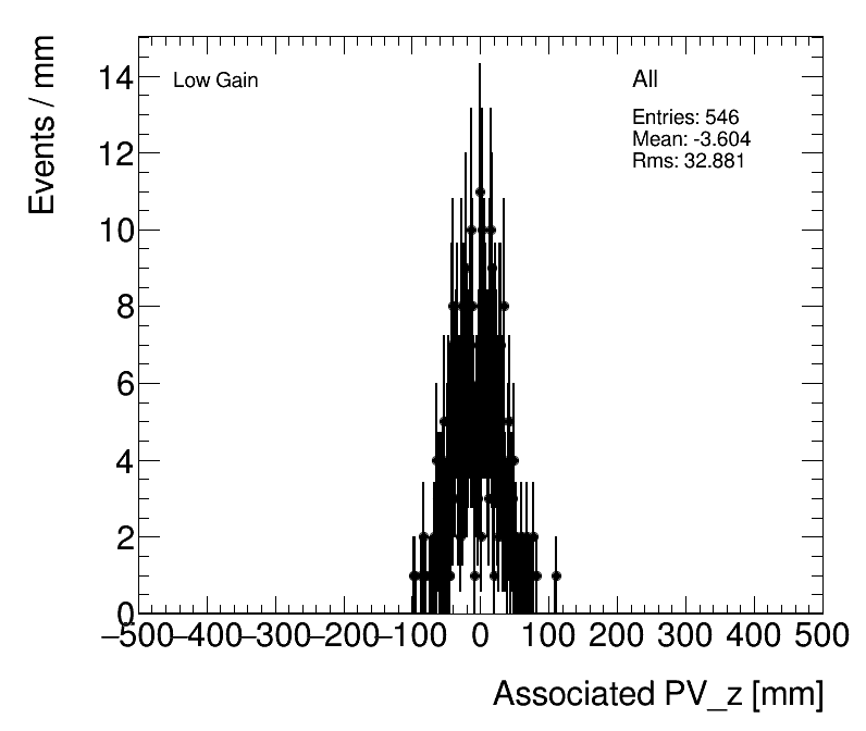 | Average Cell Time vs. PVz position Low Gain (1) Celltime vs PVz (2) PVz only |