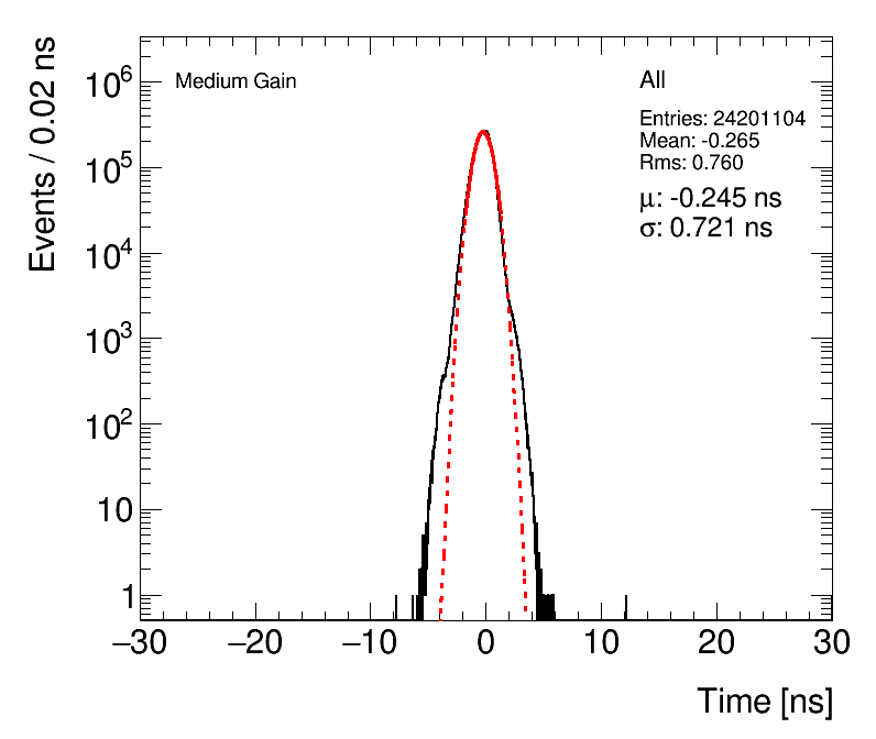 | Time vs. Path length difference (After ToF Correction) By Side Time vs. Path length difference (After ToF Correction) By SubDetector |
