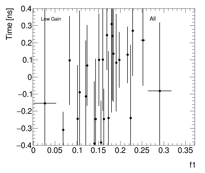 | Average Time vs Fractional Energy Deposit Low Gain (1) f1 (2) f3 |
