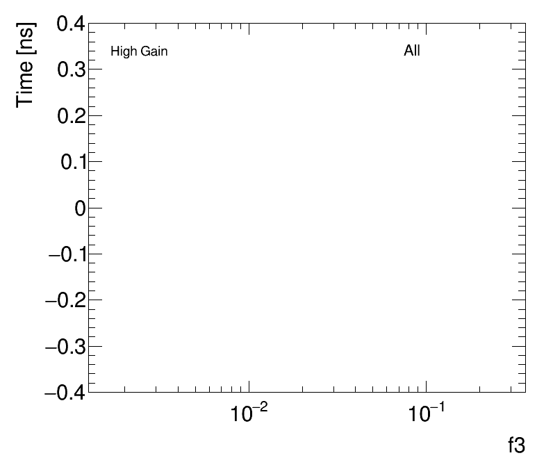 | Average Time vs Fractional Energy Deposit High Gain (1) f1 (2) f3 |