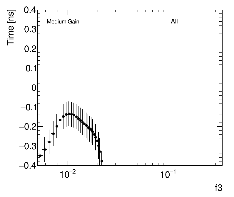 | Average Time vs Fractional Energy Deposit Medium Gain (1) f1 (2) f3 |