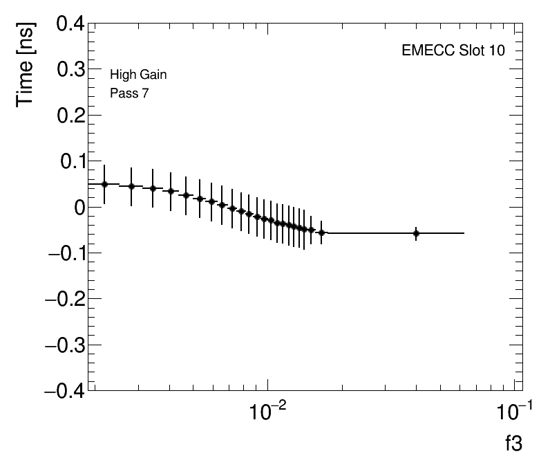 Average Cell Time vs Fractional Energy Deposit High Gain EMECC Slot 10 |