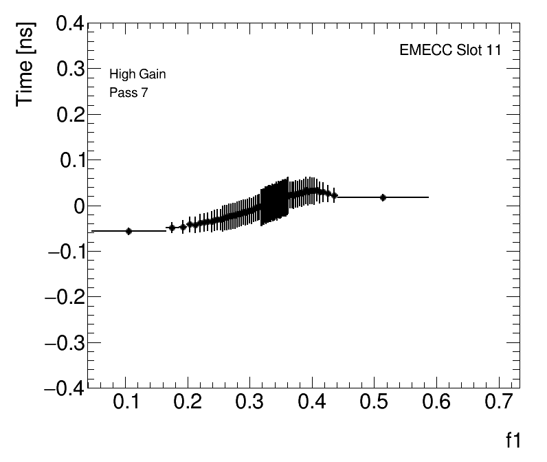 Average Cell Time vs Fractional Energy Deposit High Gain EMECC Slot 11 |