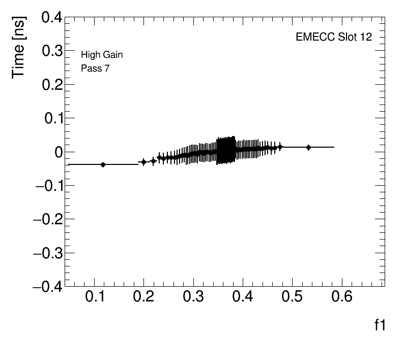 Average Cell Time vs Fractional Energy Deposit High Gain EMECC Slot 12 |