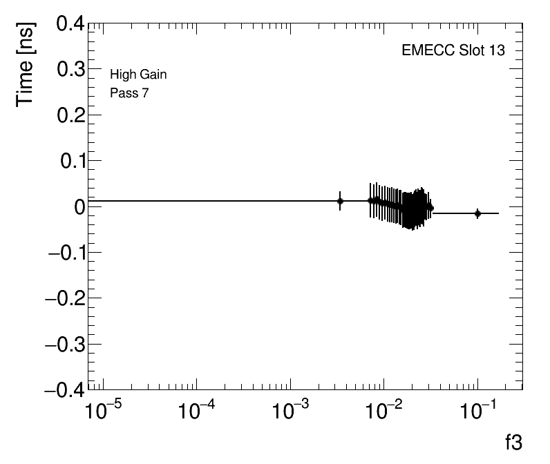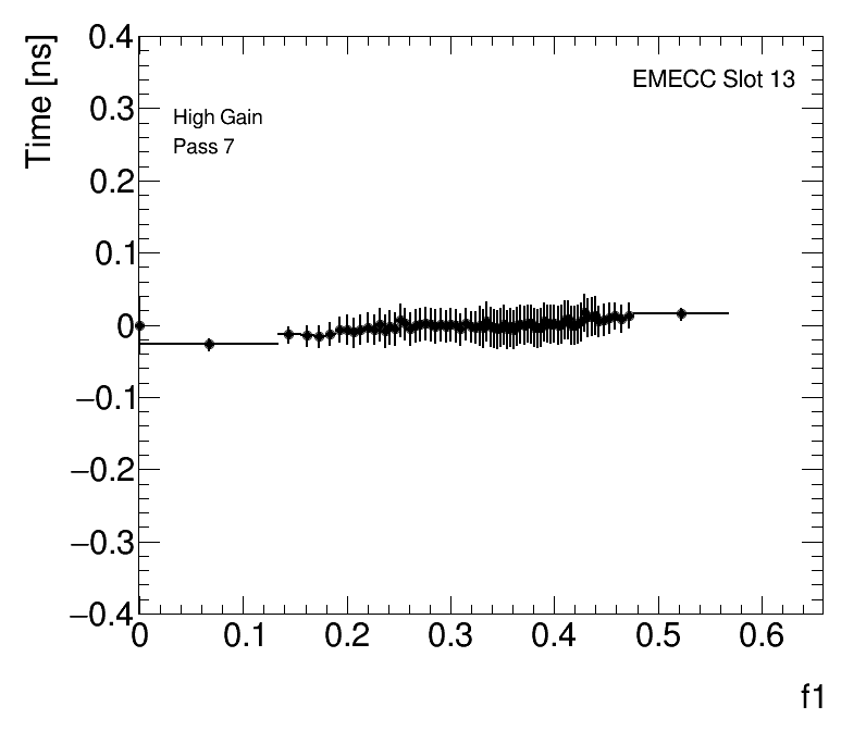 Average Cell Time vs Fractional Energy Deposit High Gain EMECC Slot 13 |