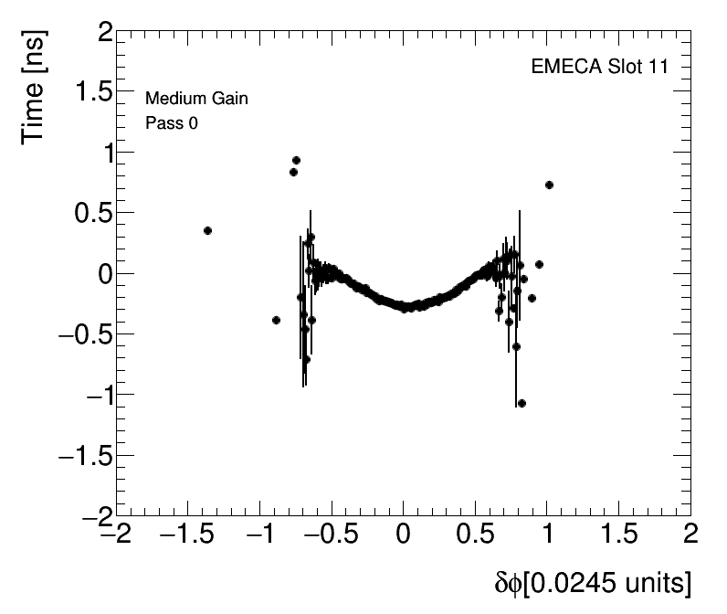 Average Cell Time vs Angular Cell Position Medium Gain EMECA Slot 11 |