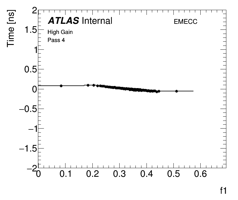 | Average Cell Time vs Fractional Energy Deposit High Gain EMECC |