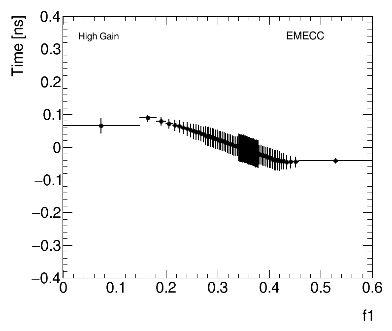 | Average Cell Time vs Fractional Energy Deposit High Gain EMECC |