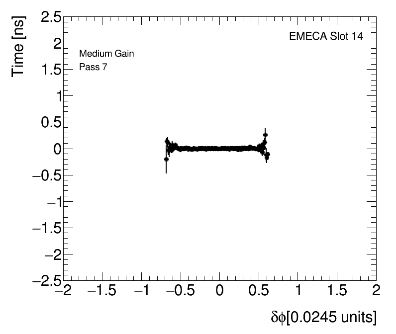 Average Cell Time vs Angular Cell Position Medium Gain EMECA Slot 14 |