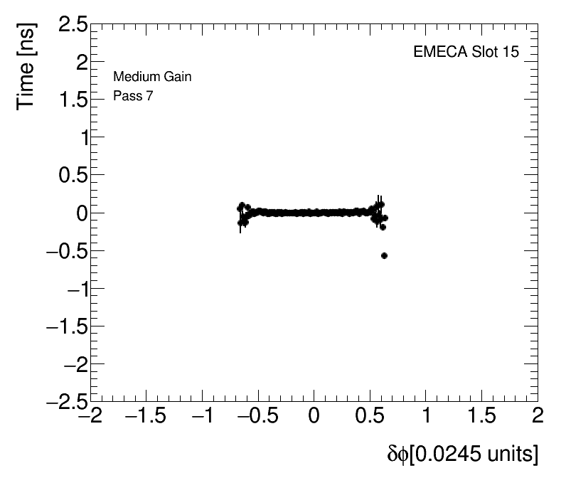 Average Cell Time vs Angular Cell Position Medium Gain EMECA Slot 15 |