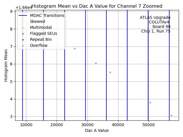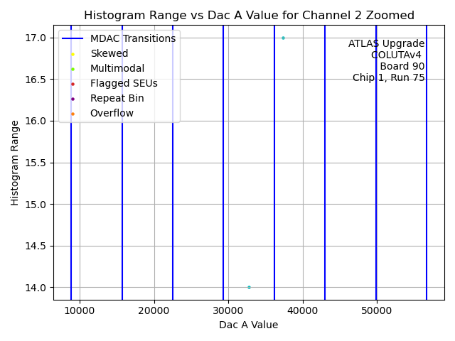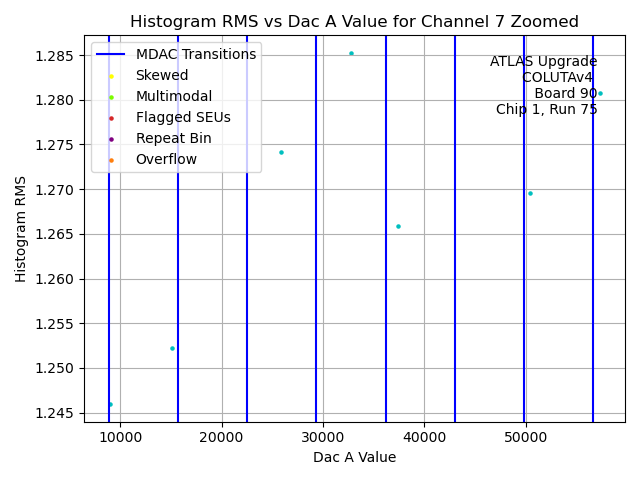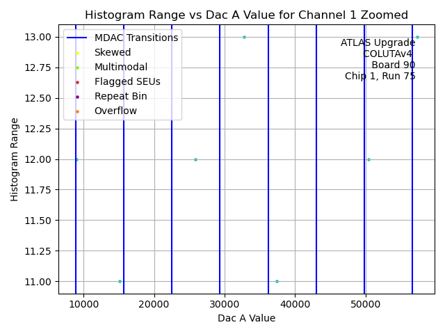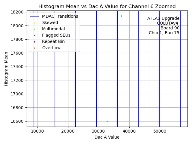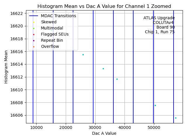 | Channel No. | Hist. Mean vs. DAC A Code | Hist. Range vs. DAC A Code | Hist. RMS vs. DAC A Code | Histogram of Histogram Ranges |