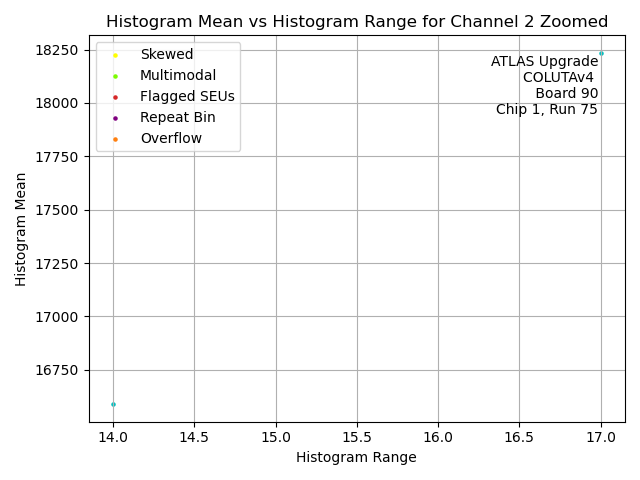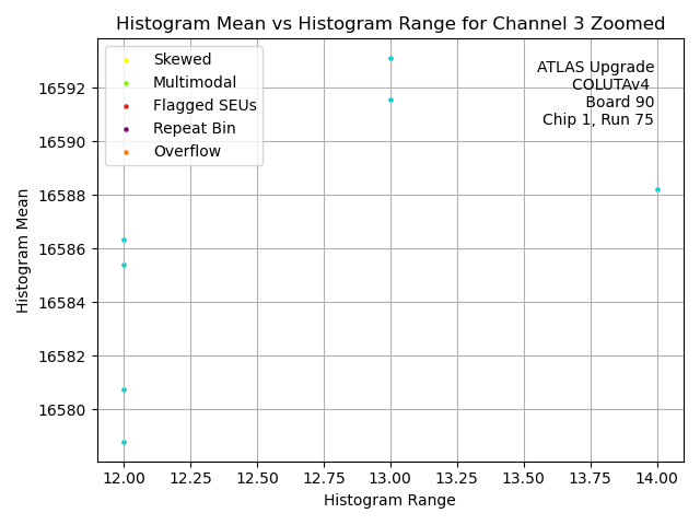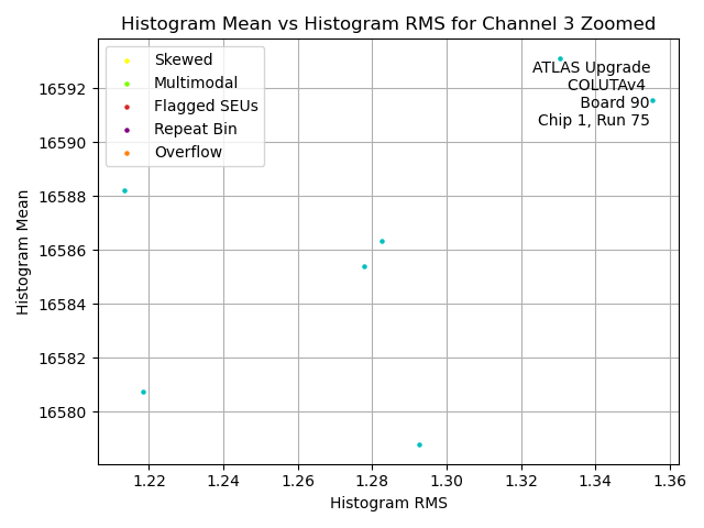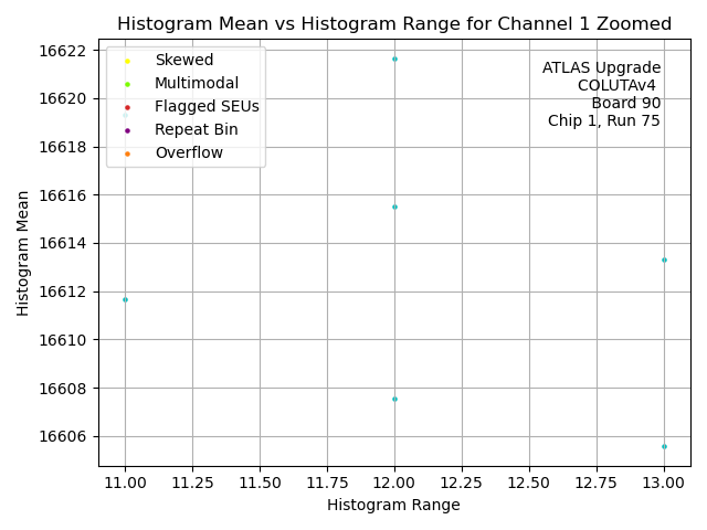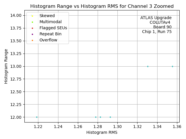 | Channel No. | Hist. Mean vs. Hist. RMS. | Hist. Range vs. Hist. RMS. | Hist. Mean vs. Hist. Range |