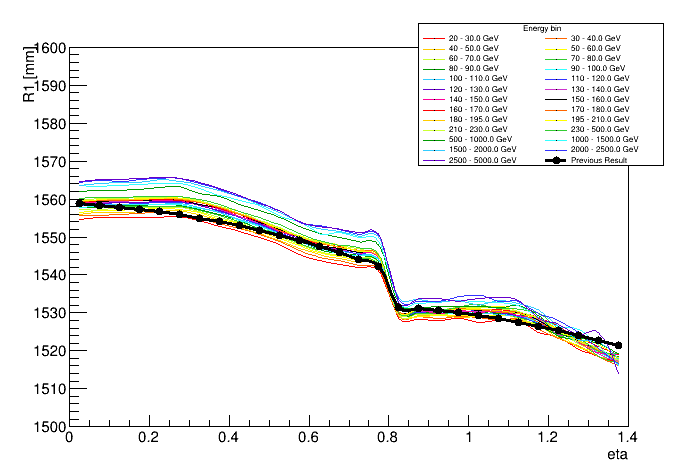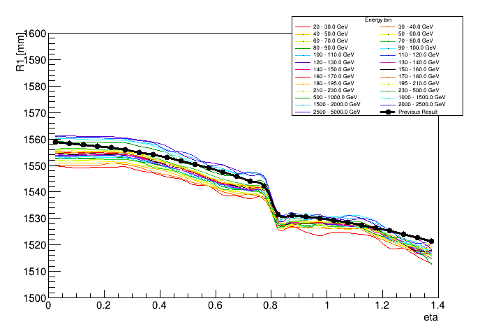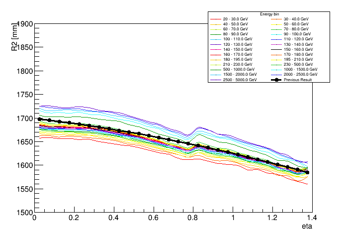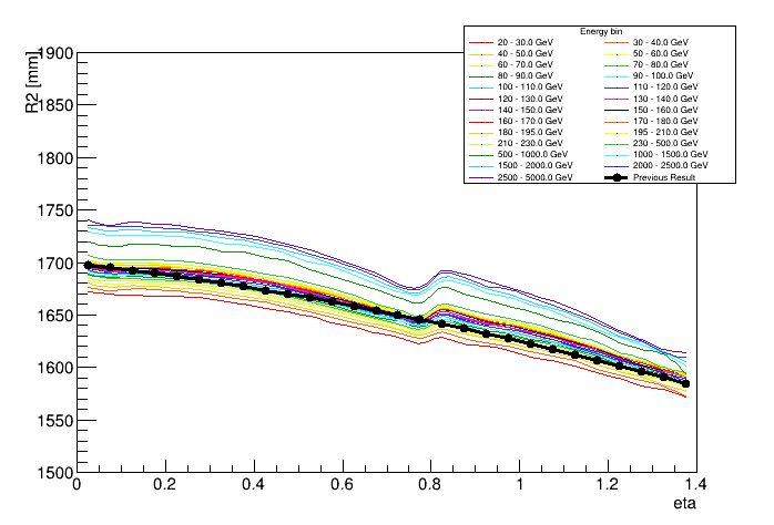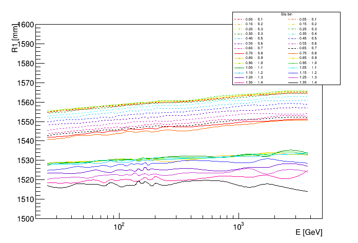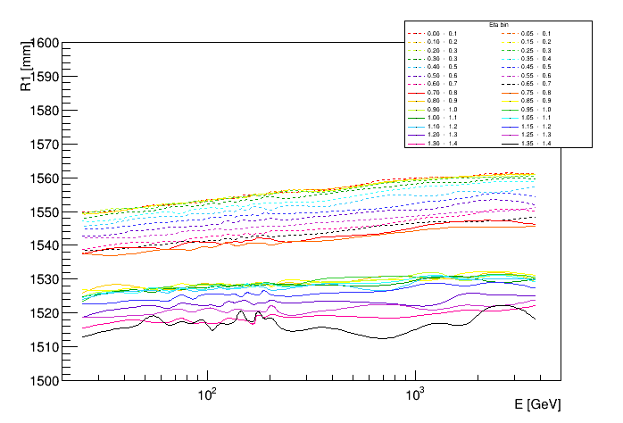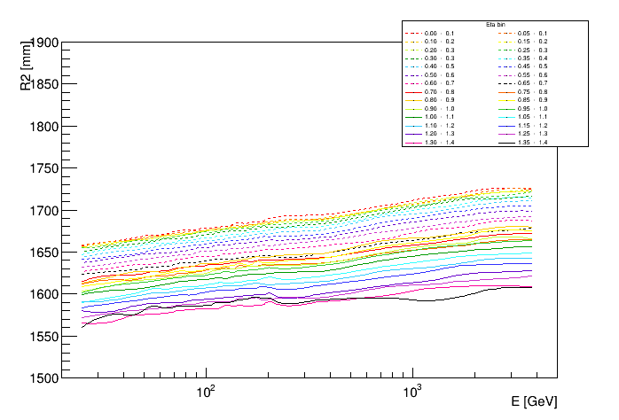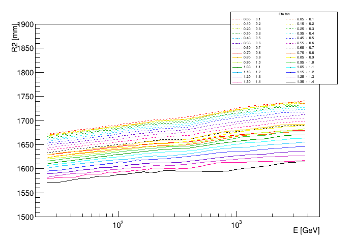 Shower depth R vs eta and energy | ![]() |