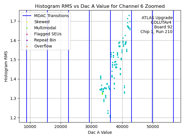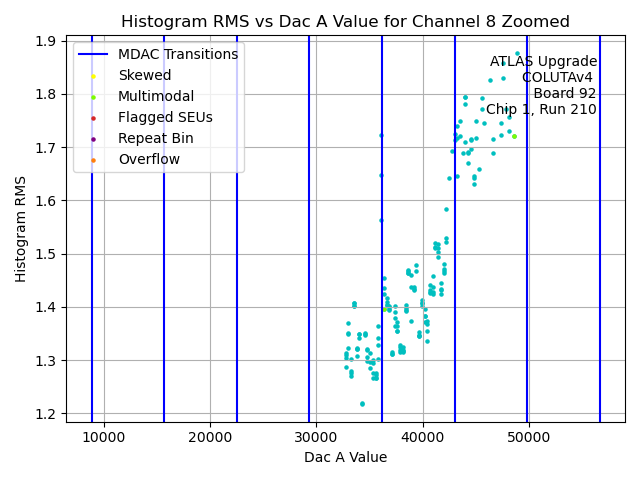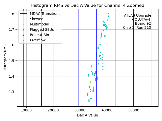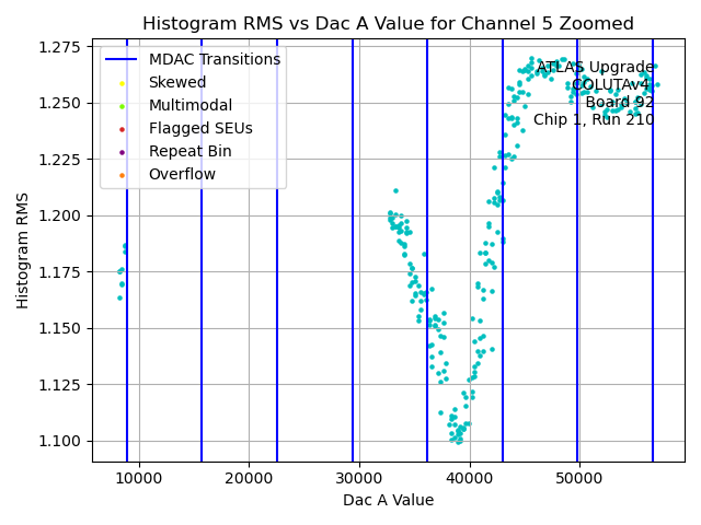 Channel No.Hist. Mean vs. DAC A Code Hist. Range vs. DAC A Code Hist. RMS vs. DAC A Code Histogram of Histogram Ranges