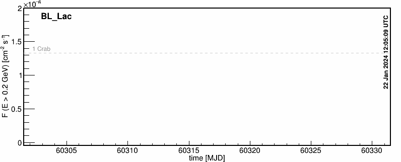 blazars (BL Lacs, FSRQs) ordered by RA. Fluxes are calculated in 1-day