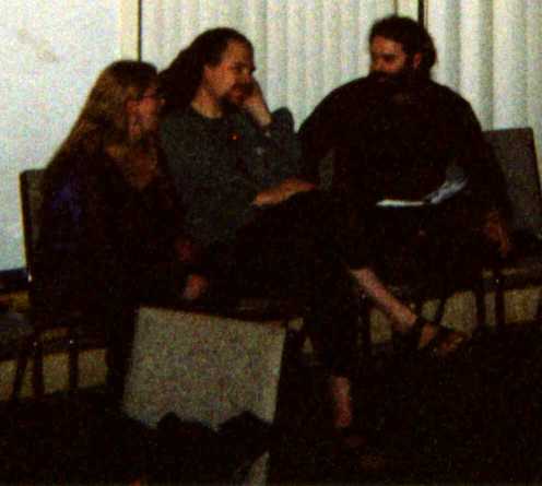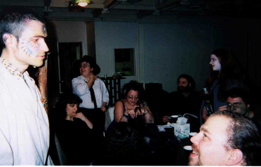 I'm talking on the phone to Walter. On the left is Michele, on the right is Dan. By the way, Dan and Robin win the long-distance award: they flew 800 miles from Chicago to attend the party. |