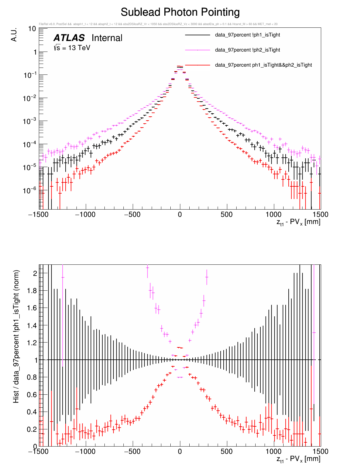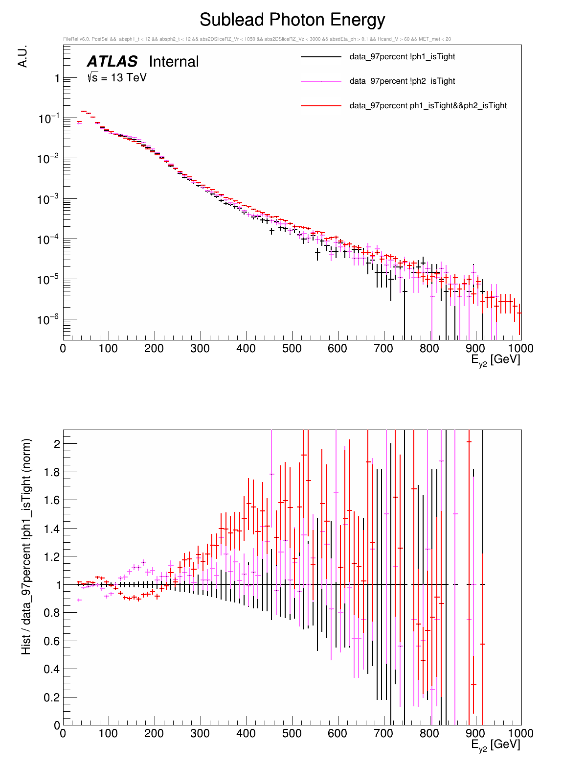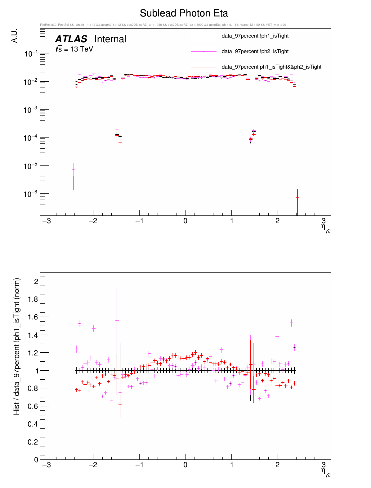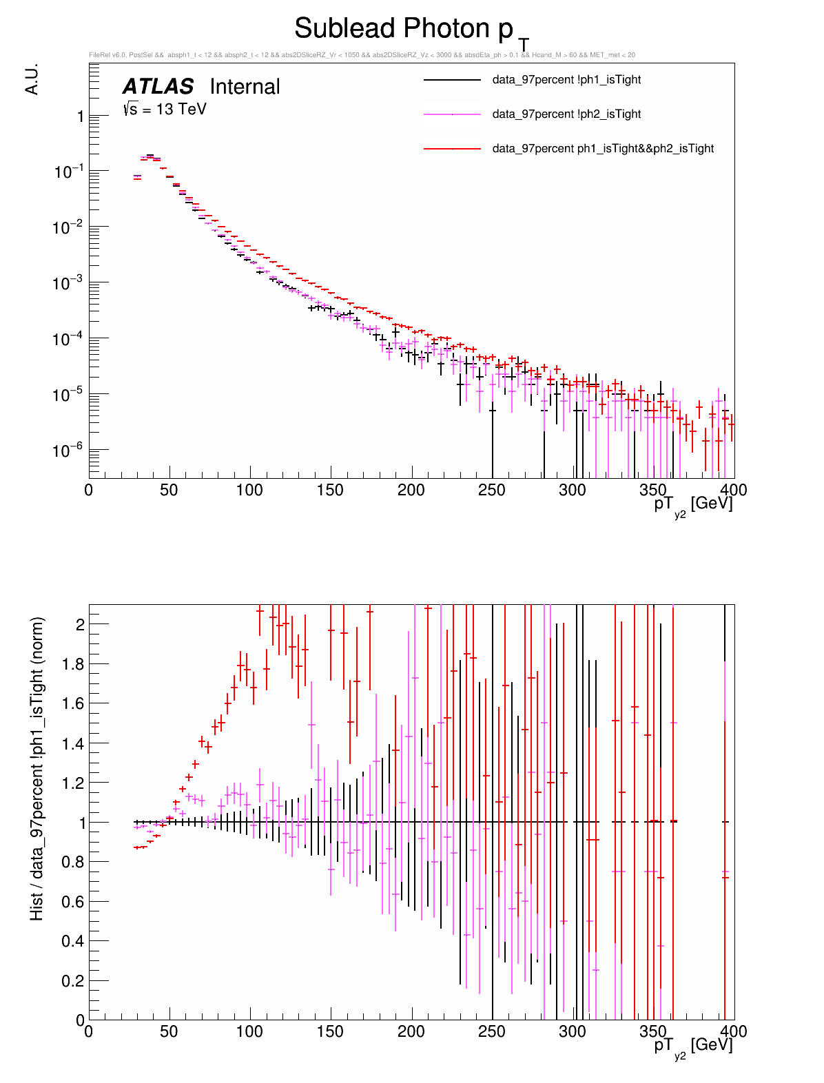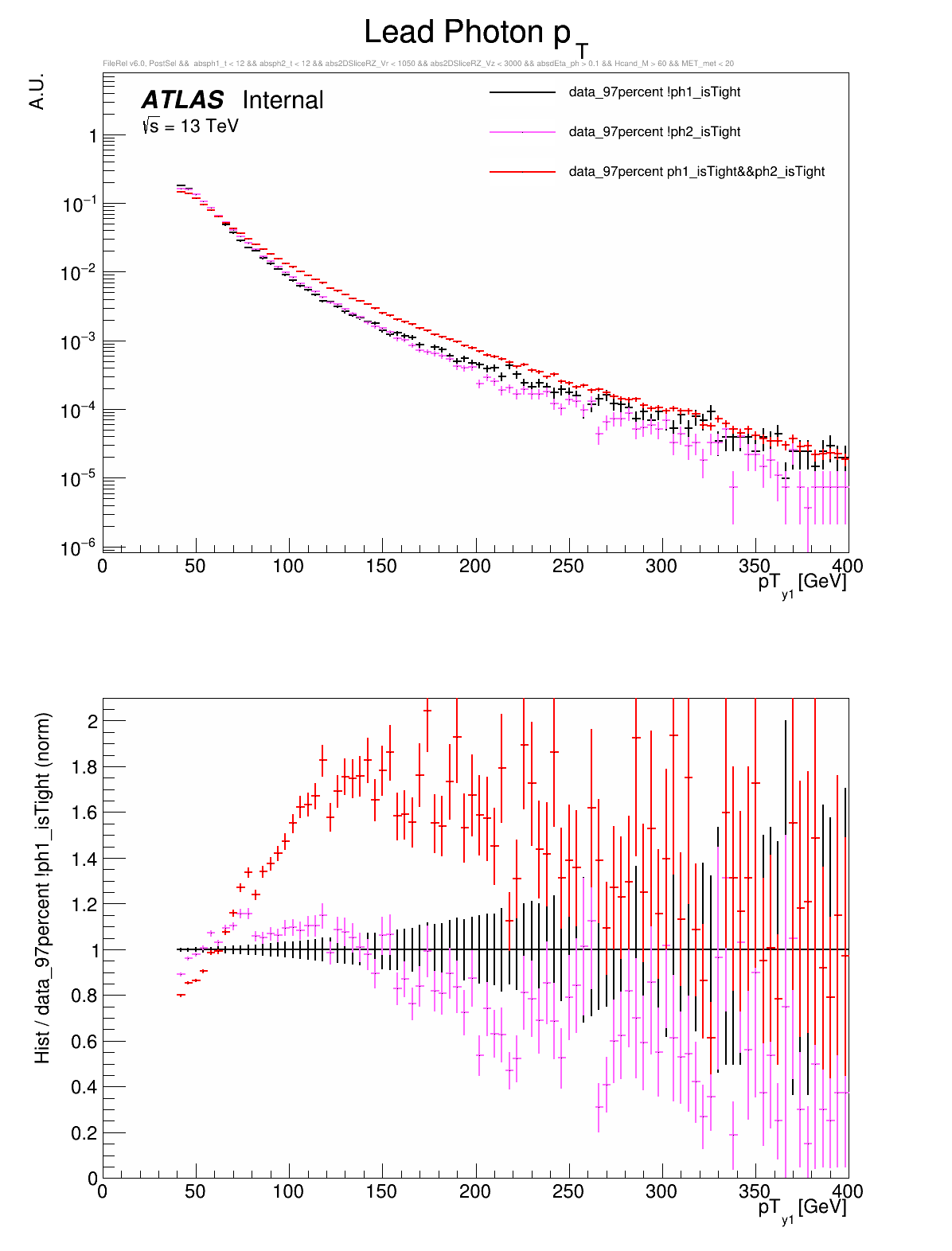 ○ All variables are compared between: both photons are tight, leading photon is not tight, or subleading photon is not tight
