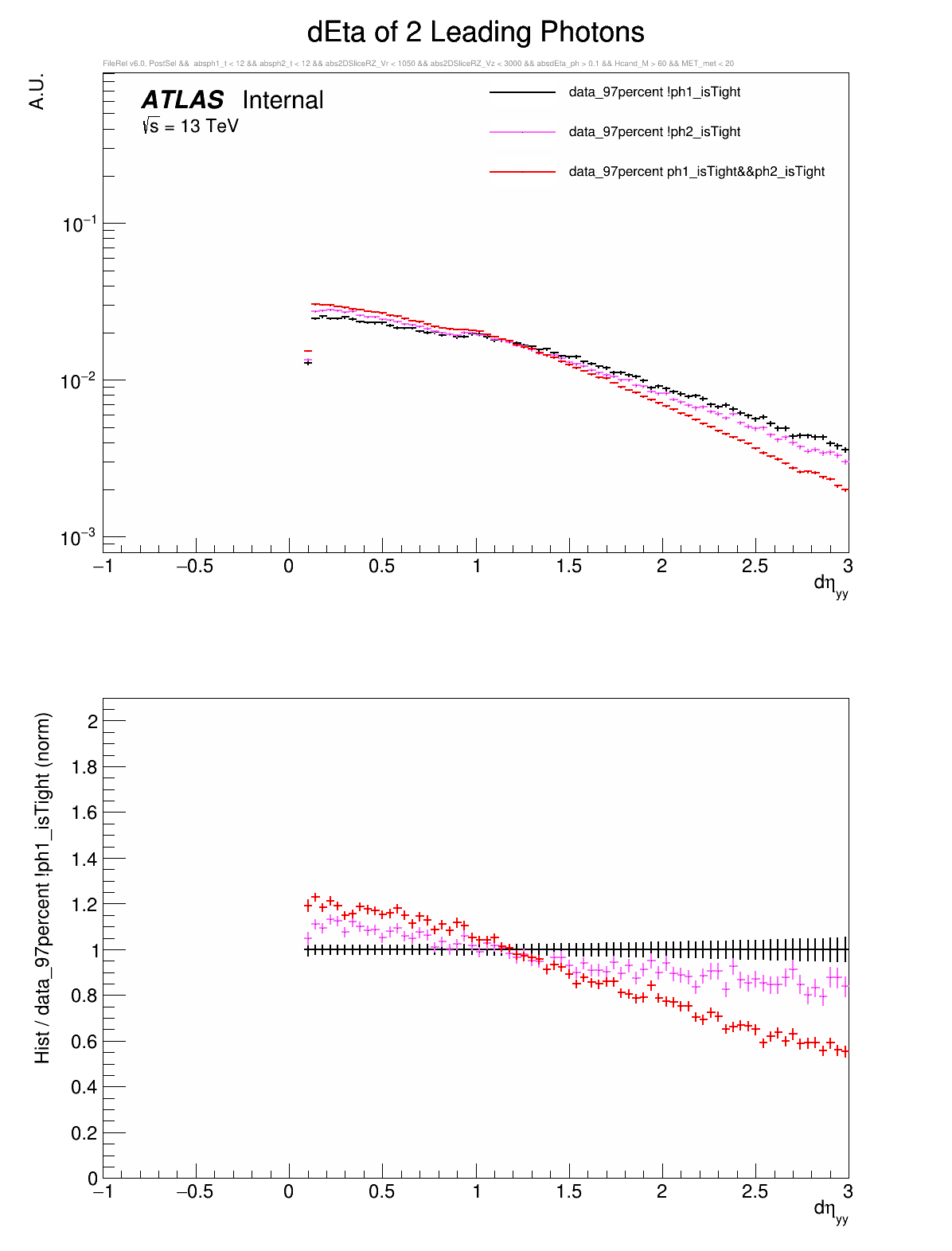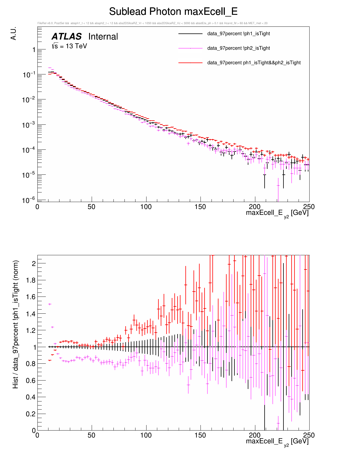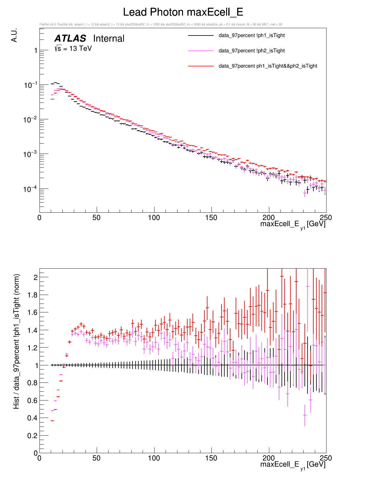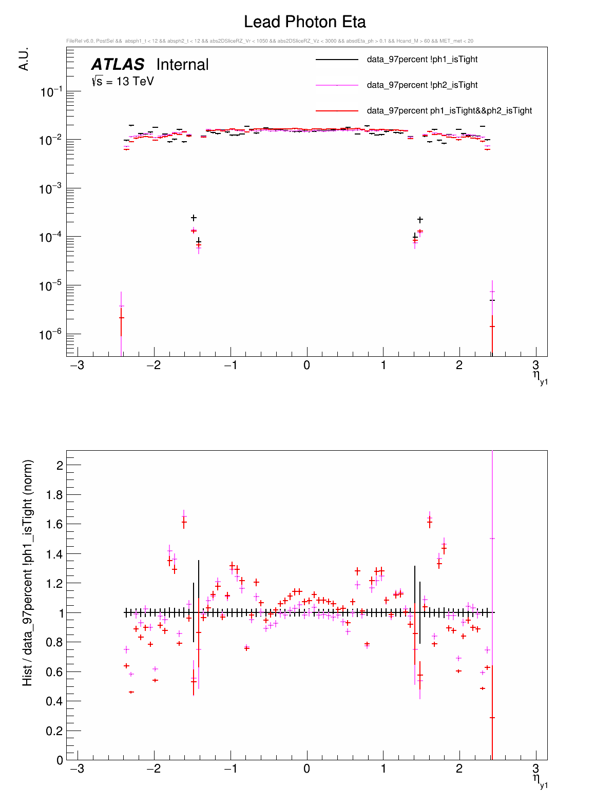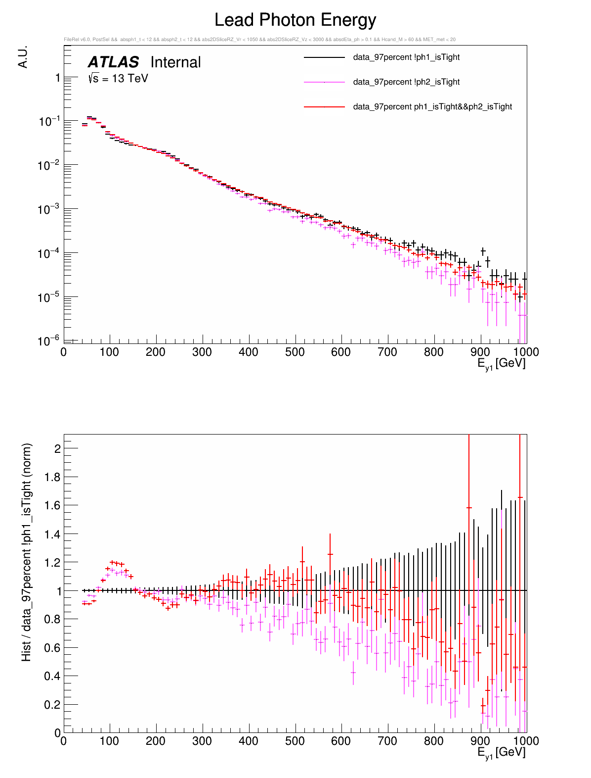 ○ All variables are compared between: both photons are tight, leading photon is not tight, or subleading photon is not tight