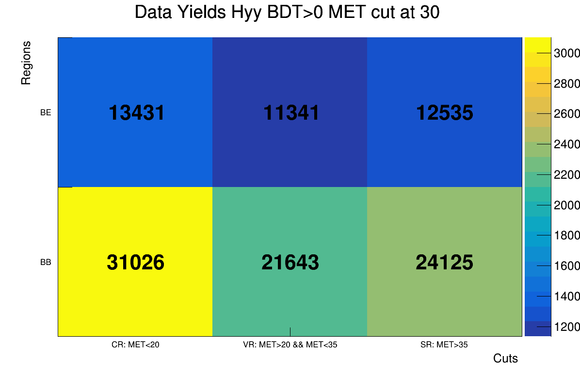 Data Yields 30 vs 35 MET cut